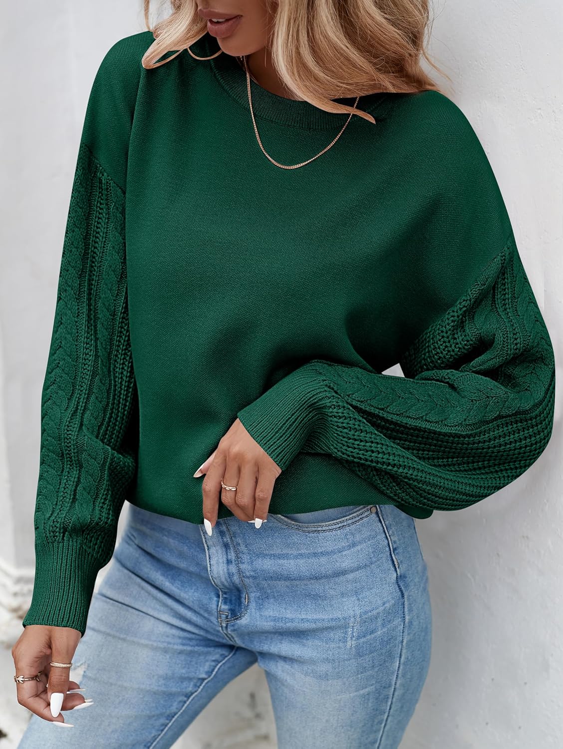 Women Fall Long Sleeve Crew Neck Solid Color Cable Knit Chunky Casual Oversized Pullover Sweater Tops