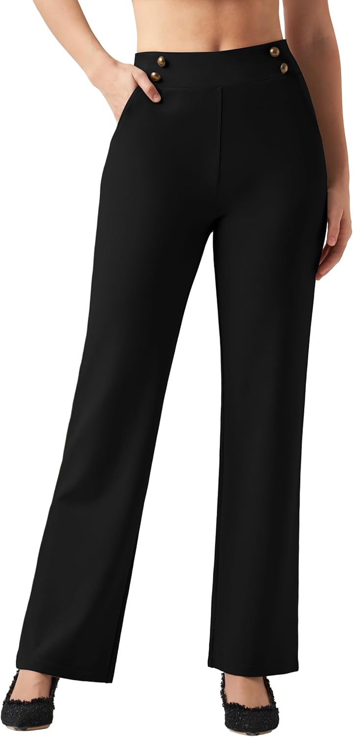 Women Wide Leg Dress Pants High Waisted Stretch Work Pants Office Business Casual Slacks Pockets Petite/Regular/Tall