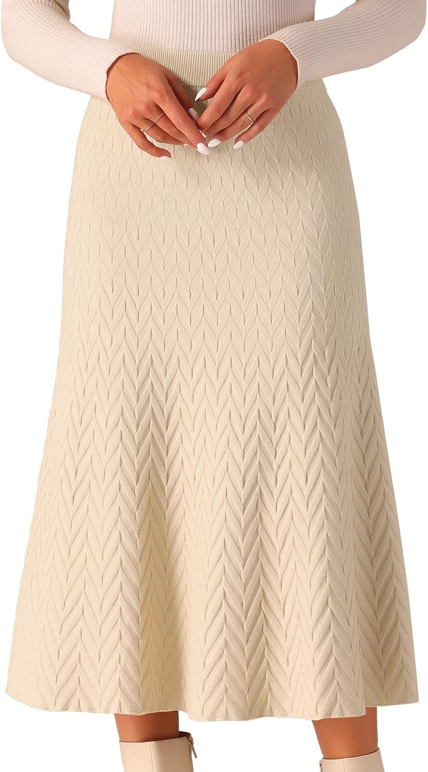 - The midi length sweater aline skirt are perfect for showing off your favorite boots or heels, while the cozy knit fabric will keep you warm and stylish all season long.